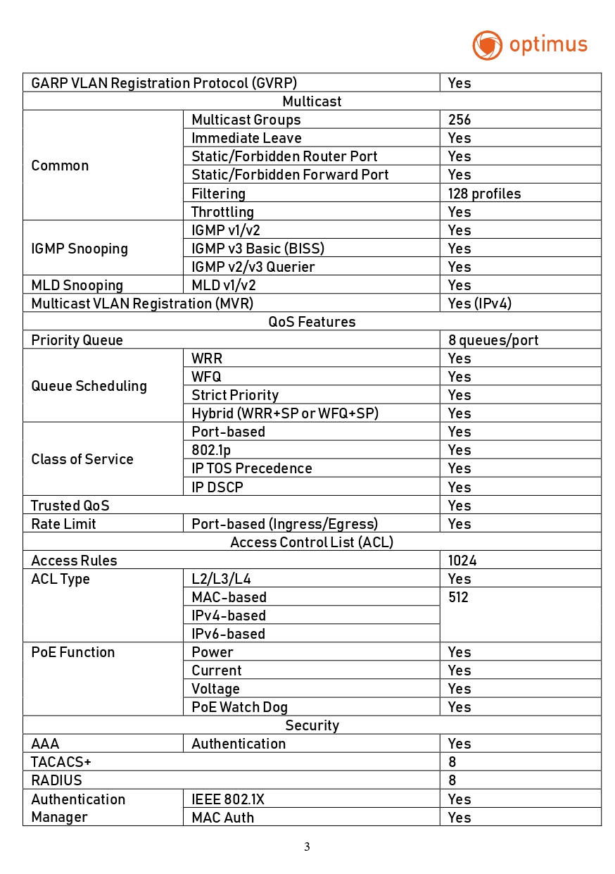 Коммутатор Optimus U1IM-24G/4GS_V.1 – 24 - портовый управляемый PoE-коммутатор. Все порты коммутатора работают в 10/100/1000 Мбит/с с поддержкой PoE (технология передачи питания по сетевому кабелю вместе с данными), к каждому из которых можно подключать сетевые устройства (IP-камеры, IP-телефоны, беспроводные точки доступа).