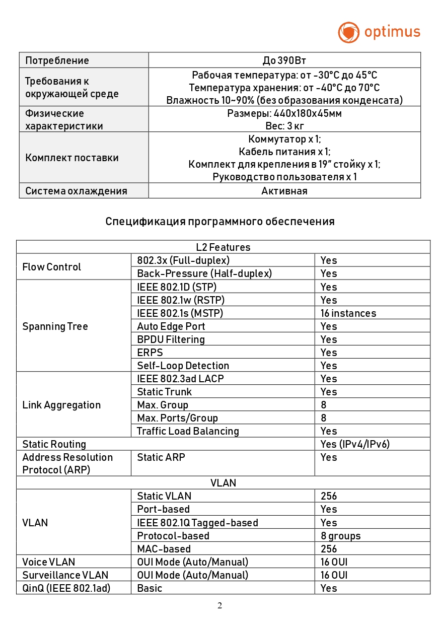Комплектация: Коммутатор х 1; Кабель питания х 1; Комплект для крепления в 19″ стойку х 1; Руководство пользователя х 1