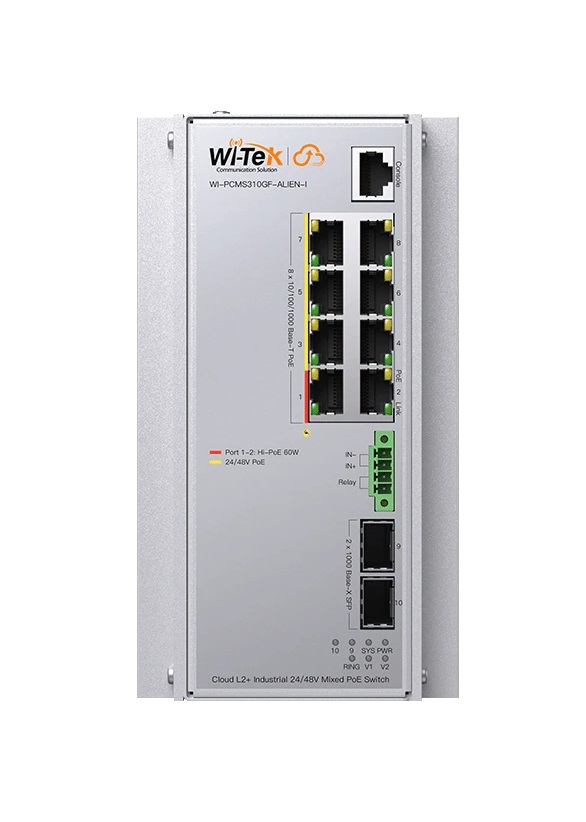 WI-PCMS310GF-Alien-I коммутатор промышленный управляемый L2+ 8GE+2SFP+1Console, Mix PoE 24V/48V, Wi-Tek; 2 x 60 Вт, 6 x 30 Вт; 100 x 180 x 120 мм; 2,04 кг.