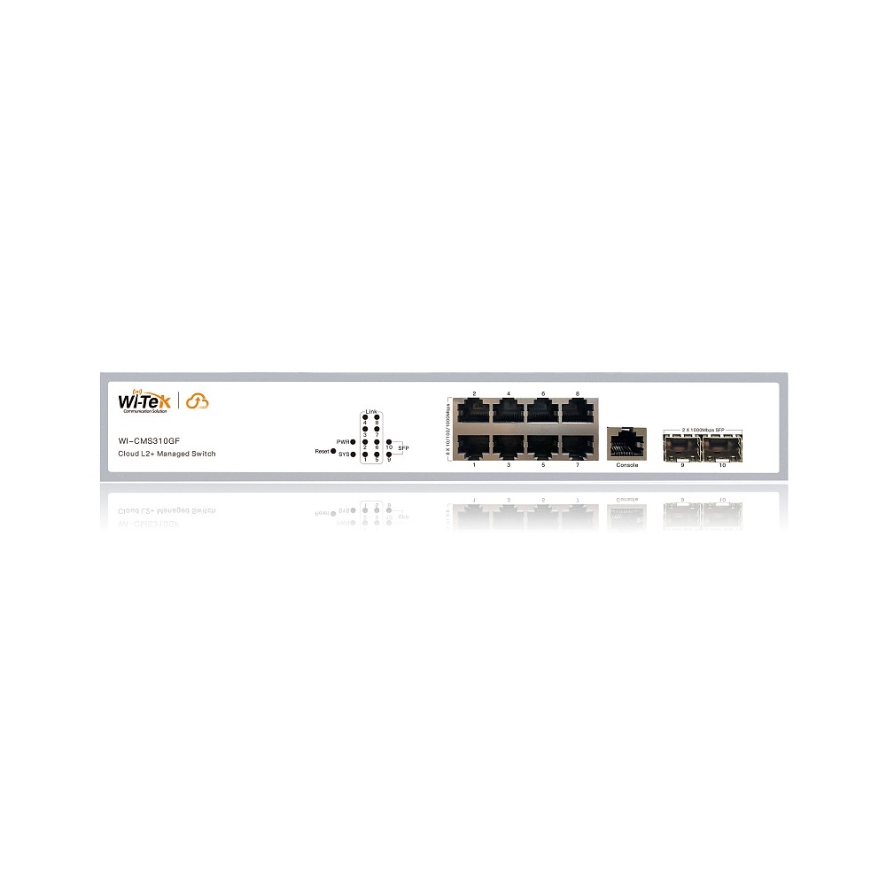 WI-CMS310GF коммутатор управляемый L2, порты 8 100/1000Base-TX + 2 SFP, Wi-Tek; 8 x RJ45 10/100/1000 Мбит/с (Downlink Ports); 2 x SFP-слота 1000 Мбит/с (Uplink Ports); 1 x консольный порт; 128 МБ DDR3, 32 МБ флэш-памяти; AC 100-240 В, 50/60 Гц; -10~50 °C; 280 х 180 х 44 мм; 1,34 кг.