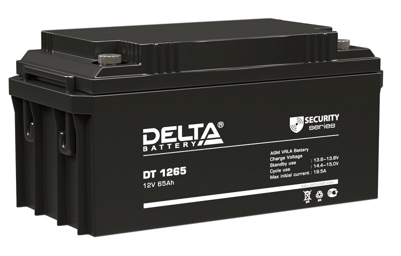 DT 1265 аккумулятор Delta; 12В; 65 Ач; -20÷50 °C; 350х167х172 мм; 21 кг.