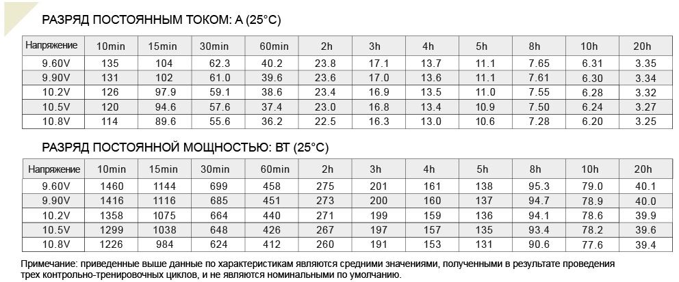 Срок службы: 200-250 циклов "заряд-разряд" при 100% разряде или до 6 лет в буферном режиме.