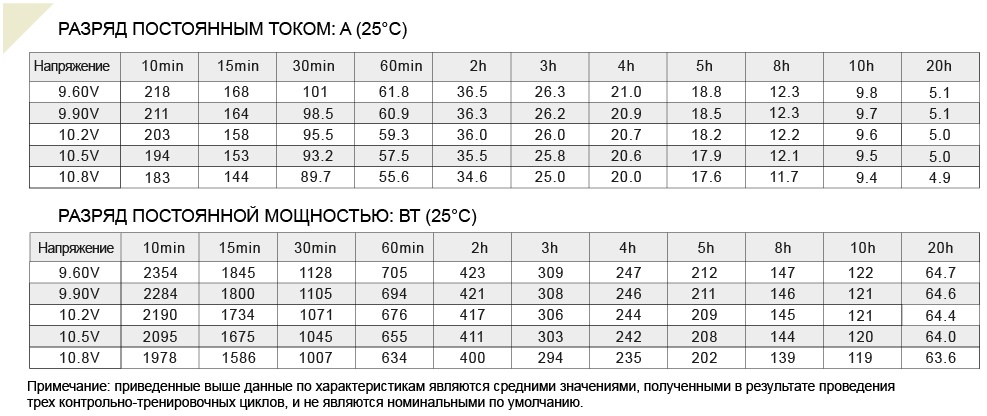 Срок службы: 200-250 циклов "заряд-разряд" при 100% разряде или до 6 лет в буферном режиме.Характеристики заряда и эксплуатация