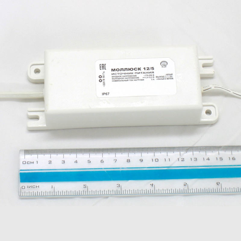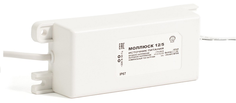 Моллюск 12/5 источник электропитания малогабаритный; 12 DC; 5 А; -30…+40 °С; 56х150х35 мм; 0,35 кг.