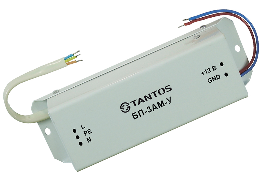 БП-3АМ-У источник вторичного электропитания импульсный Tantos; 12В, 3А; защита от короткого замыкания; защита от пробоя вход-выход 4000В; защита от перегрузки по входу; IP67; -40...+40°С; 148×32×46 мм; 0,43 кг.
