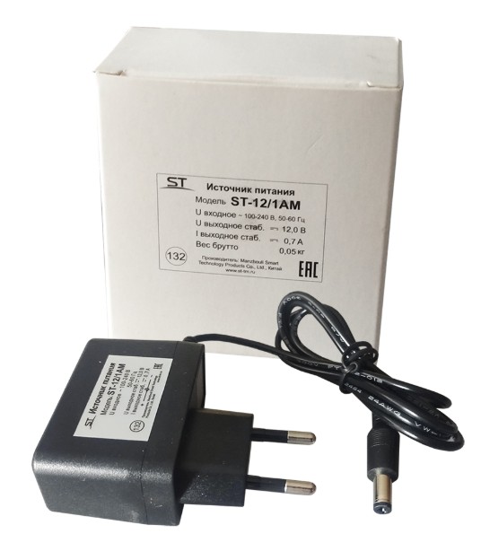 ST-12/1AM (0,7А) стабилизированный источник питания для питания аппаратуры напряжением 12В Space Technology; выходное напряжение 12 В; ток нагрузки 0.7 А; 0…+40°C; 74х56х25 мм.
