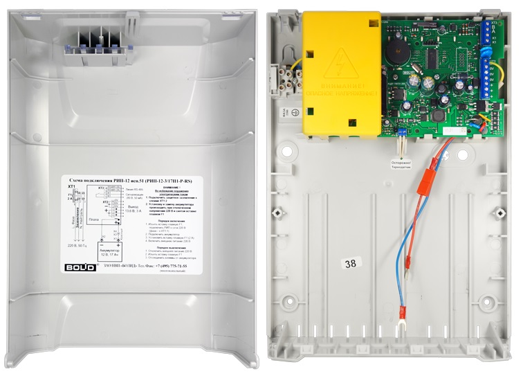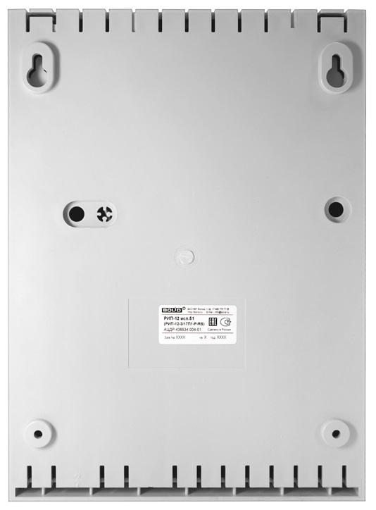 РИП-12 исп. 51 (РИП-12-3/17П1-Р-RS) резервированный источник питания Болид; U-вх.150...250 В; U-вых.13...14.2 В; I-ном.3 А; I-max.4 А (до 10 минут); под АКБ 12 В 17 Ач; световая и звуковая индикация режимов работы; интерфейс RS-485 ИСО "ОРИОН"; емкость буфера событий - 29 событий; программируемый оптоэлектронный выход; защита от короткого замыкания; защита аккумулятора от глубокого разряда; IP30, t-раб.-10...+40°С; 230х320х110 мм; 0,5 кг.