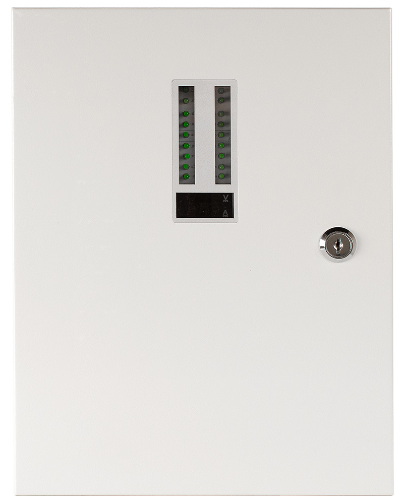 Профессиональный источник питания, создан на основе высоконадежных элементов нового поколения. Металлическое исполнение, в виде шкафа, позволяет легко и удобно монтировать благодаря продуманной конструкции. Все элементы размещены внутри корпуса, закрывающиеся на замок. Среди элементов присутствует распределительный блок, который позволяет подключать несколько устройств раздельно. Он помогает сделать коммутацию понятной и доступной, что делает обслуживание такой системой более комфортной. Данный источник питания незаменим при построении любых внутренних охранных систем.