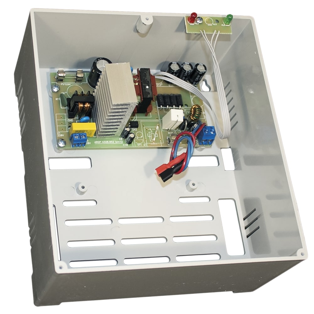 Источник вторичного электропитания резервированный для обеспечения бесперебойного электропитания потребителей при номинальном напряжении 12В постоянного тока и токе потребления до 4А, без защиты от глубокого разряда АКБ.
