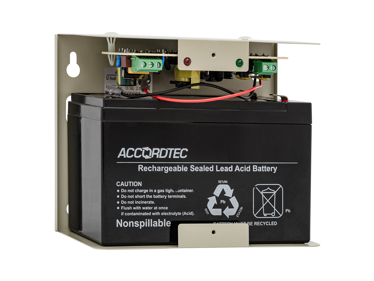 ББП-20 Lite источник вторичного электропитания резервированный AccordTec; выходное напряжение 12 В; ток нагрузки номинальный 2А; напряжение питающей сети 110 - 250 В; ток заряда АКБ 1 А; емкость АКБ 7 А*ч; защита от короткого замыкания и перегрузки; световая индикация; металл; 15...+50°С; 134x164x73 мм; 475 г.