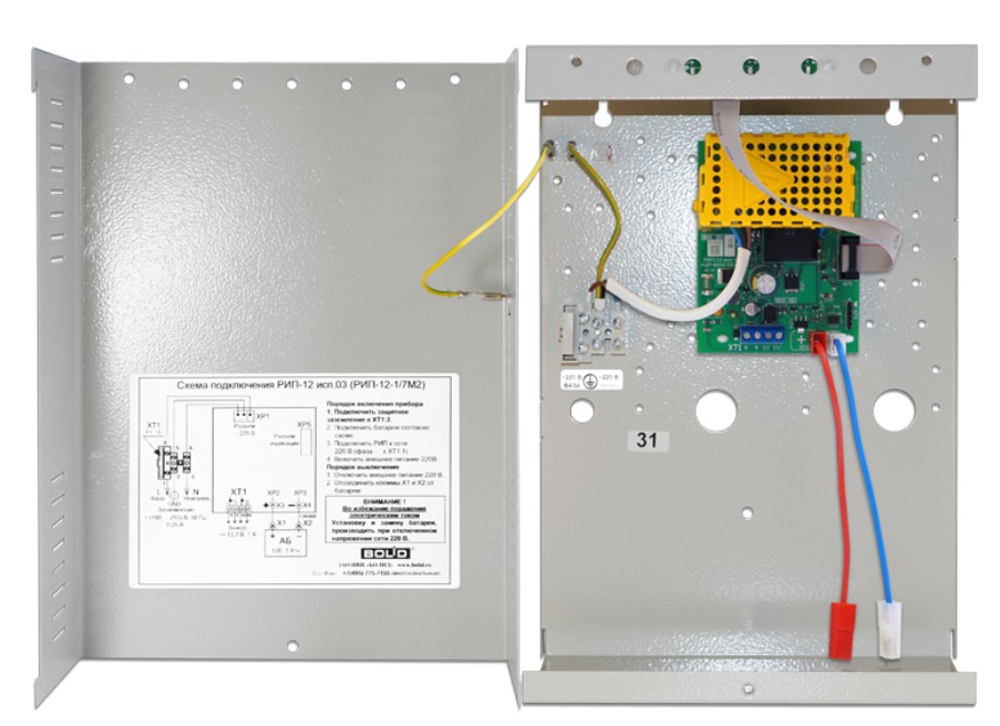 РИП-12 исп.03 (РИП-12-1/7М2) резервированный источник питания Болид; IP30; -10...+ 40 °C; 200х280х100 мм; 2,5 (без АБ).