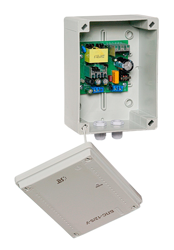 БПС-12/5-У источник вторичного электропитания резервированный SLT; стабилизированный IP56, пластиковый корпус, 12В; 5А; 150..265В 50Гц; 185х124х84; 0,25кг.