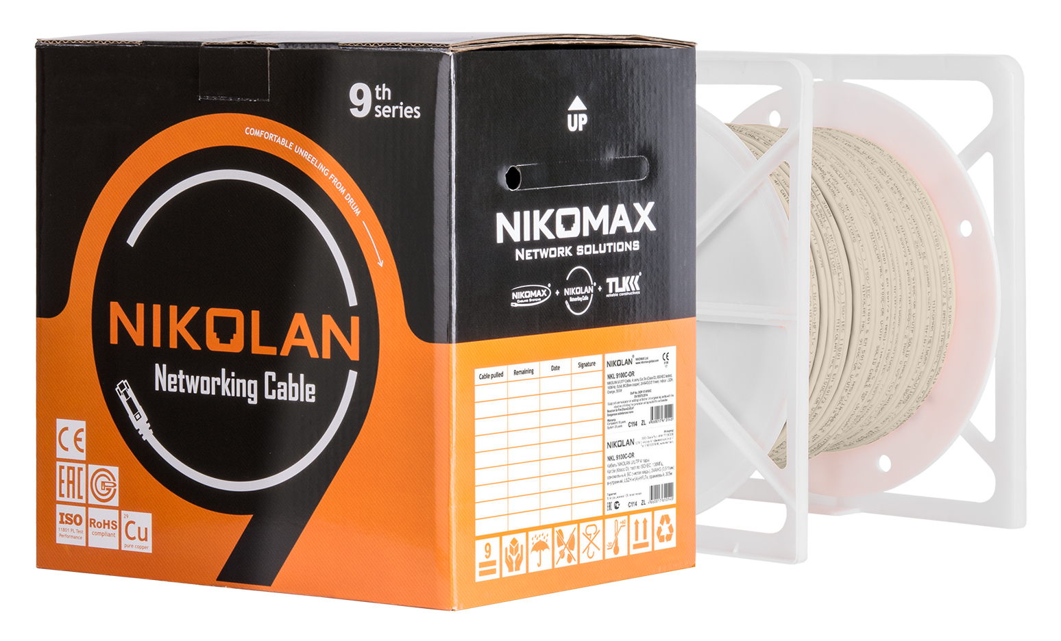 Кабели NIKOLAN 9-й серии подойдут для проектов с повышенными требованиями к производительности и долговечности кабельной инфраструктуры и применяются для построения сертифицированных СКС NIKOMAX со сроком гарантии до 25-ти лет. Высочайшее качество изготовления гарантирует превосходство характеристик над самыми жесткими мировыми стандартами. Вся продукция 9-й серии поставляется на барабанах, гарантирующих сохранность при транспортировке, постоянство характеристик и удобство работы при монтаже.