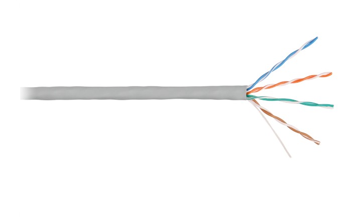 Кабель UTP (витая пара) кат 5e, 4х2х0.50 для внутренней прокладки; оболочка LSZH нг(А)-HFLTx, серый.