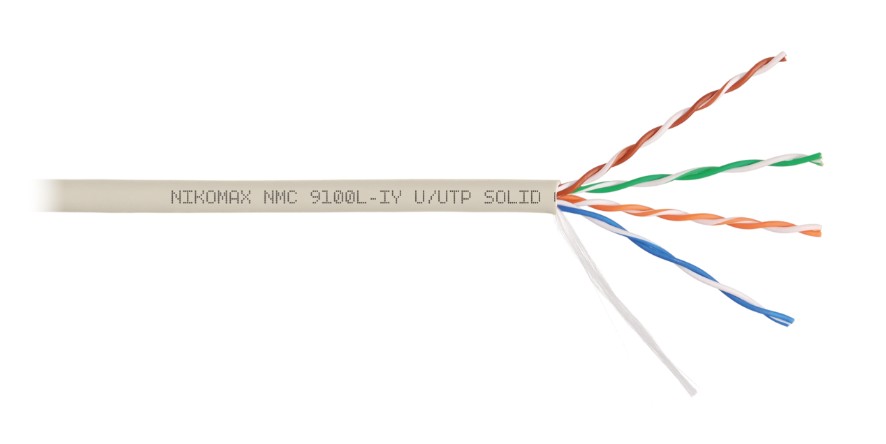 NMC 9100L-IY кабель NIKOMAX; U/UTP 4 пары; Кат.5e (Класс D); тест по ISO/IEC; 100МГц; одножильный; BC (чистая медь); 24AWG (0,52мм); полимерный материал нг(А)-LSLTx; внутренний; светло-серый; 305м.