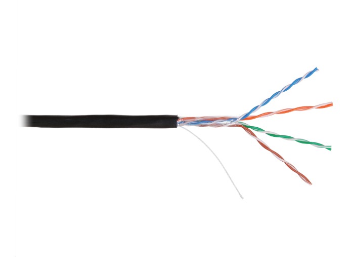 Кабель витая пара U/UTP, категория 5e, 4х2х0.51, для наружной прокладки, одножильный, PE, черный, внешний диаметр 5.3 мм, -60...+60°С, 305 м.