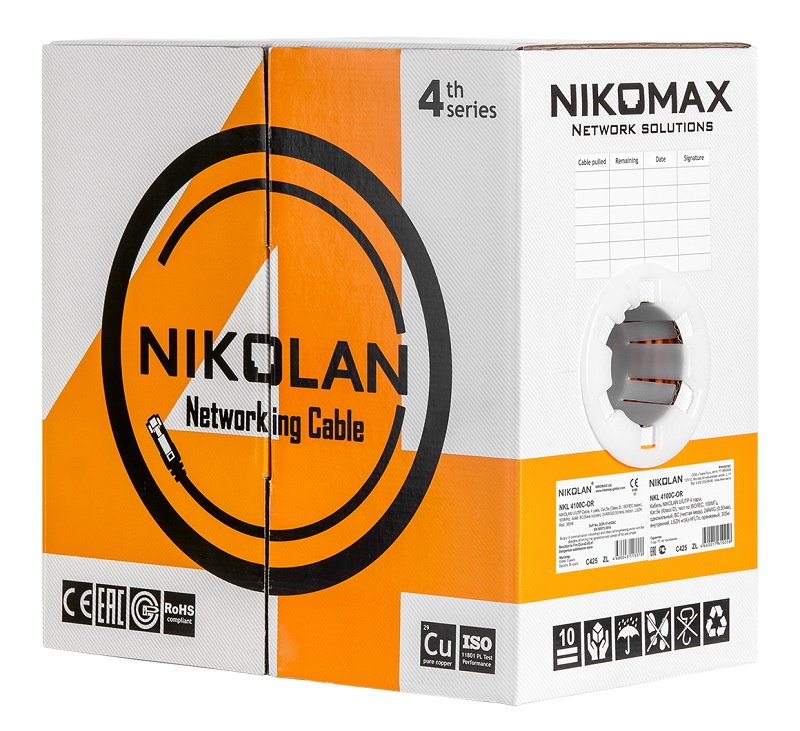 Широкий модельный ряд кабелей NIKOLAN 4-й серии позволит решить большинство задач, связанных с построением сетей, а превосходные характеристики обеспечат беспроблемную эксплуатацию на весь срок службы кабеля. Применяются для построения сертифицированных СКС NIKOMAX со сроком гарантии до 15-ти лет. Внутренние кабели представлены экранированными (F/UTP) и неэкранированными (U/UTP) моделями категории 5е и 6 с оболочками из PVC или LSZH-комапаунда. Поставляются в картонных коробках «easy-pull box» с увеличенным диаметром вставки для отмотки кабеля или на фанерных барабанах.