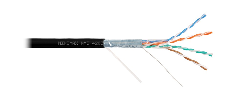 NMC 4200C-BK кабель NIKOMAX; F/UTP 4 пары; Кат.5e (Класс D); тест по ISO/IEC; 100МГц; одножильный; BC (чистая медь); 24AWG (0,51мм); полимерный материал; 305м.