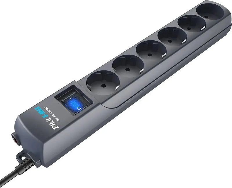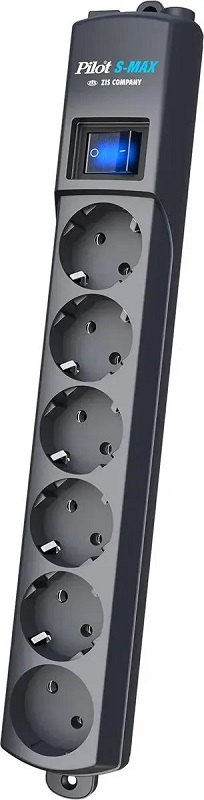Сетевой фильтр Pilot S-Max, 1.8м, (6 розеток) серый; 16А; 50Гц; 150Дж; 1000А; 220В; 3500Вт; 0.47x0.13x0.081м; 0,79кг.