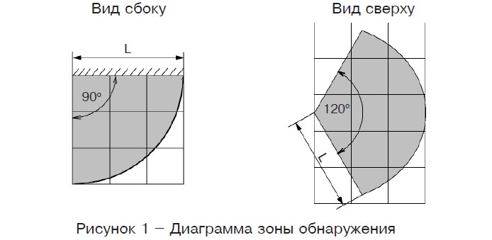 Угол обзора зоны обнаружения в горизонтальной плоскости: 120°