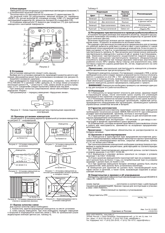 Извещатель охранный поверхностный звуковой радиоканальный ИО32910-6 «Звон-РК» - 1 шт.