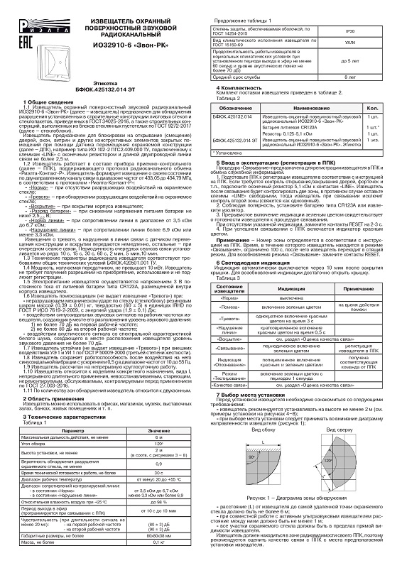 Звон-РК (ИО32910-6) извещатель охранный поверхностный звуковой радиоканальный Риэлта; угол обзора зоны обнаружения в горизонтальной плоскости 120°; от 433,05 до 434,79 МГц; диапазон: от -20 °С до +55 °С; IP30; 80х80х38 мм.