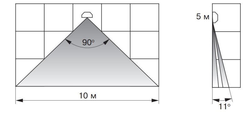 Угол обзора зоны обнаружения в горизонтальной плоскости: 90°