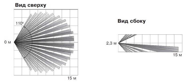 Датчик имеет объемную зону обнаружения высокой плотности (252 чувствительных зоны).