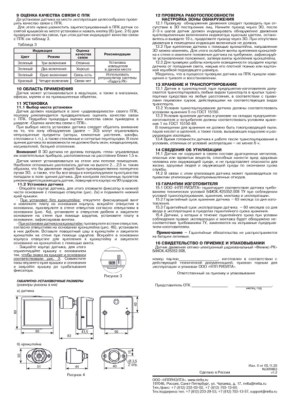 Датчик движения оптико-электронный радиоканальный «Феникс-РК» - 1 шт.