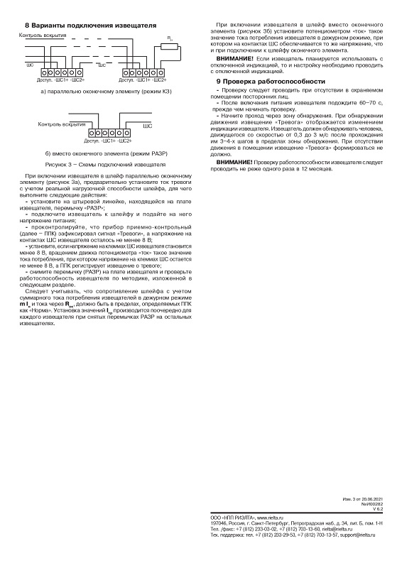 Питание извещателя осуществляется по шлейфу сигнализации.