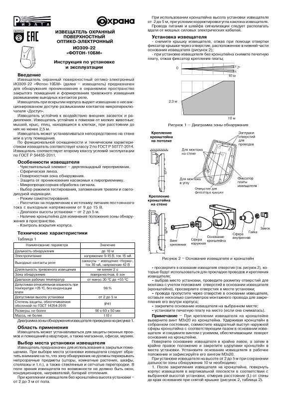 Извещатель охранный оптико-электронный ИО309-22 «Фотон-10БМ».