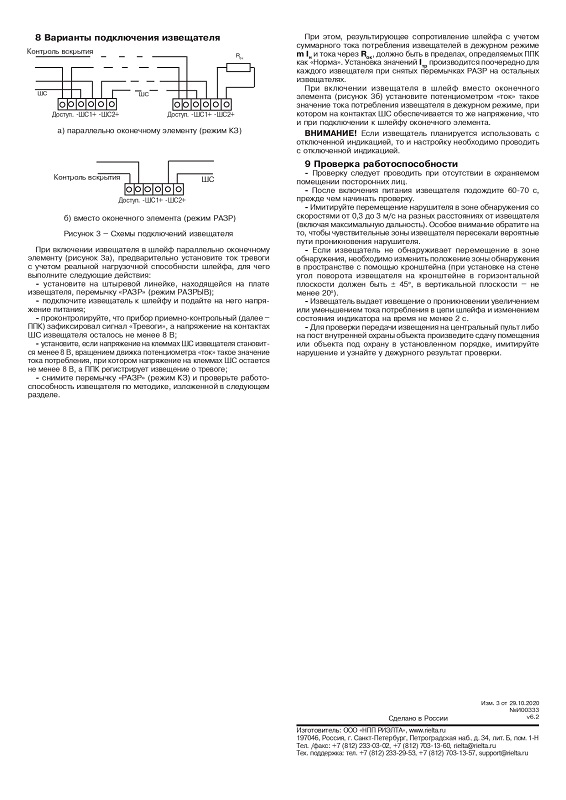 Питание извещателя осуществляется по шлейфу сигнализации.