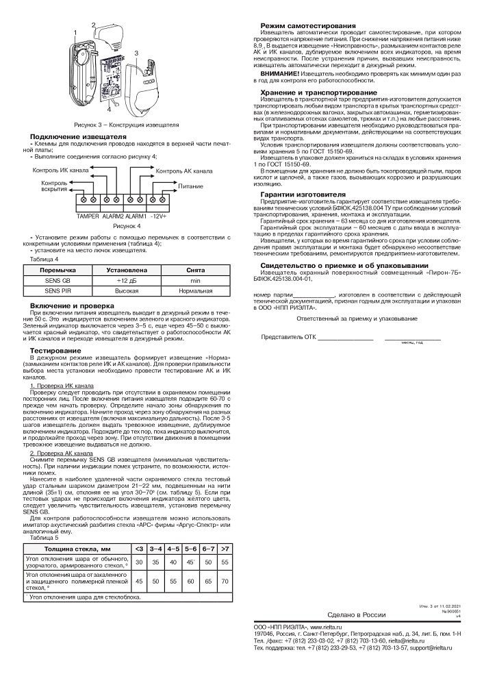 Минимальная площадь охраняемого стекла: 0,1 м2