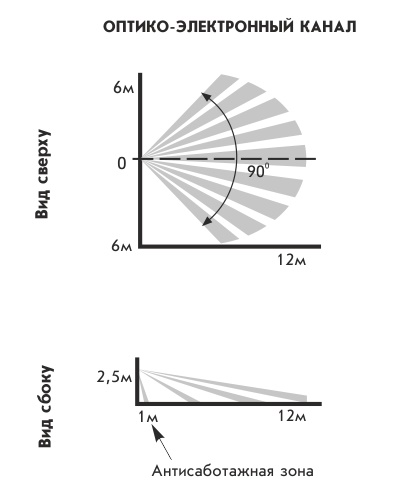 угол зоны обнаружения ИК-канала в горизонтальной плоскости: 90°
