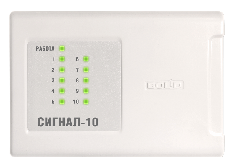 Блок приёмно-контрольный охранно-пожарный "Сигнал-10" предназначен для совместного использования с сетевым контроллером (пультом контроля и управления "С2000М" либо компьютером с установленным ПО АРМ "Орион") в качестве совмещённого приёмно-контрольного прибора и прибора управления в составе комплексов технических средств: