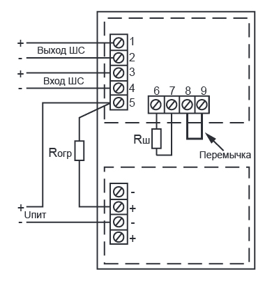 питание извещателя и передача сигнала сработки осуществляются по двухпроводному шлейфу сигнализации (ШС) (в зависимости от исполнения ИПР);