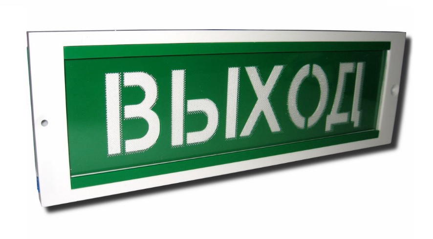 ОПОП 1-8М "Выход" световое табло Рубеж; выпускается только с надписью «ВЫХОД»; рифленая поверхность надписи позволяет равномерно обеспечить подсветку всех букв; 12(+1,8/-2) В; 20 мА; IP41; -40 до +55 °С; 301х101х13 мм.
