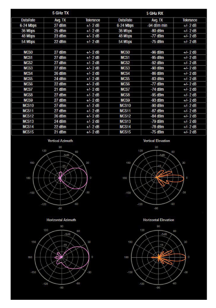 Рабочий диапазо: 4900-5900 МГц (802.11a/n)