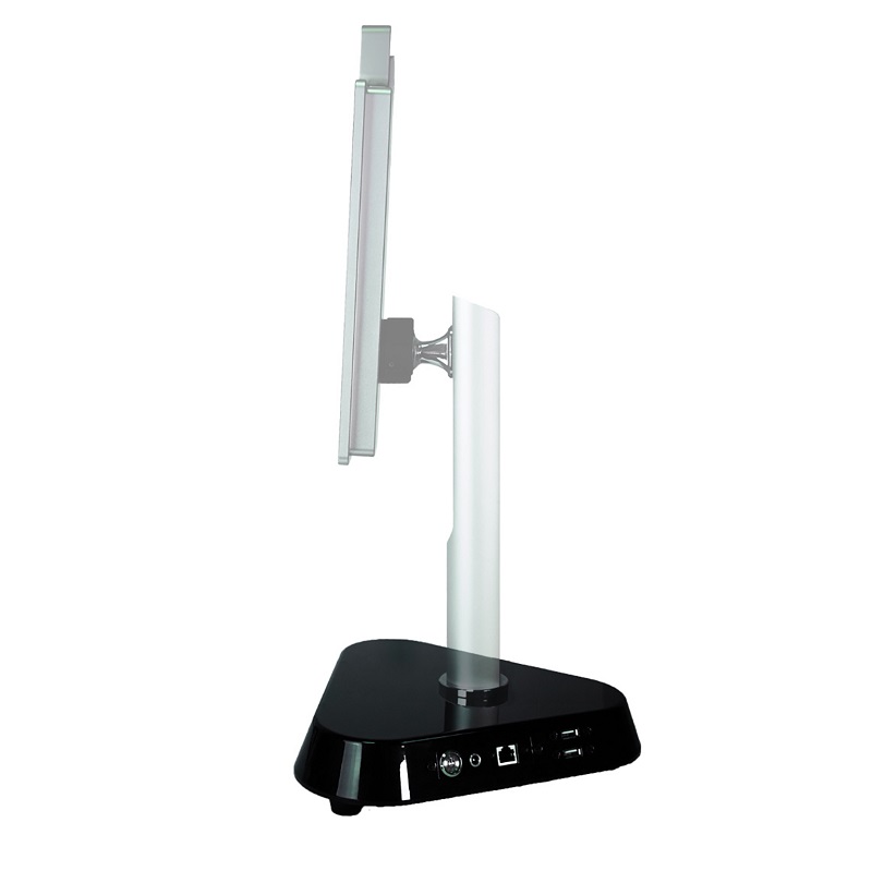 Стойка имеет нейтральный современный дизайн, что позволяет ей гармонично выглядеть практически на любых поверхностях. Устройство имеет встроенную подсветку с синими светодиодами. На задней стороне стойки размещена кнопка включения/выключения, а также интерфейсные разъемы: питание, Ethernet и 2 USB-порта.