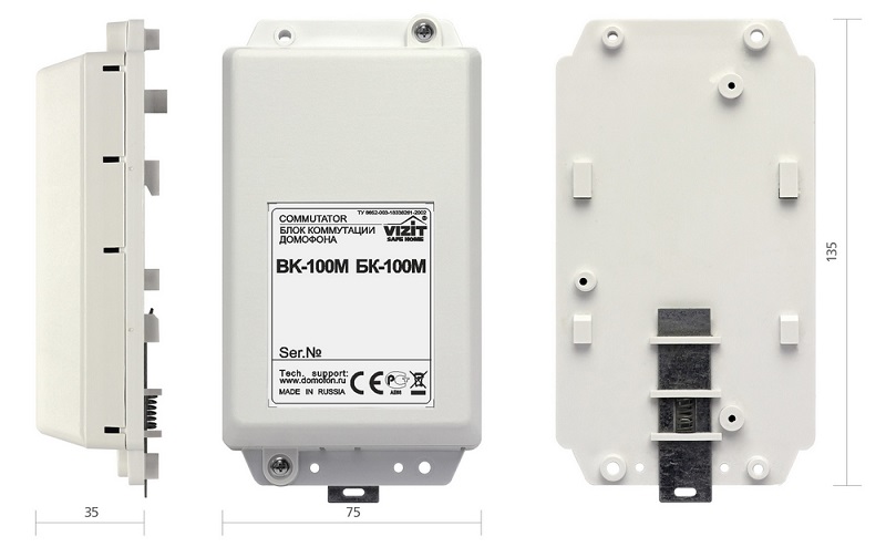БК-100М блок коммутации домофона, аналог БК-10, на 100 абонентов; -1 до +40°С; размеры, мм, (ШхВхГ) - 75х135х35.