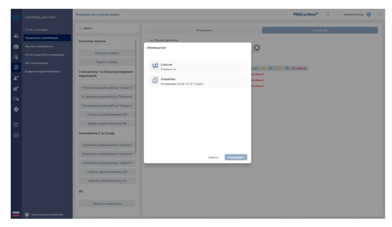 мониторинг состояния и управление устройствами ОПС «Болид» в интерфейсе системы контроля доступа PERCo-Web