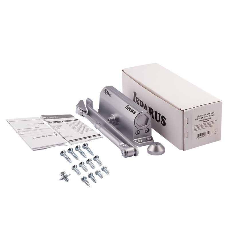 Скорость закрывания и дохлопа регулируется при помощи винтов. Подробная информация по установке и регулировки доводчика содержится в инструкции (есть в индивидуальной упаковке каждого изделия).