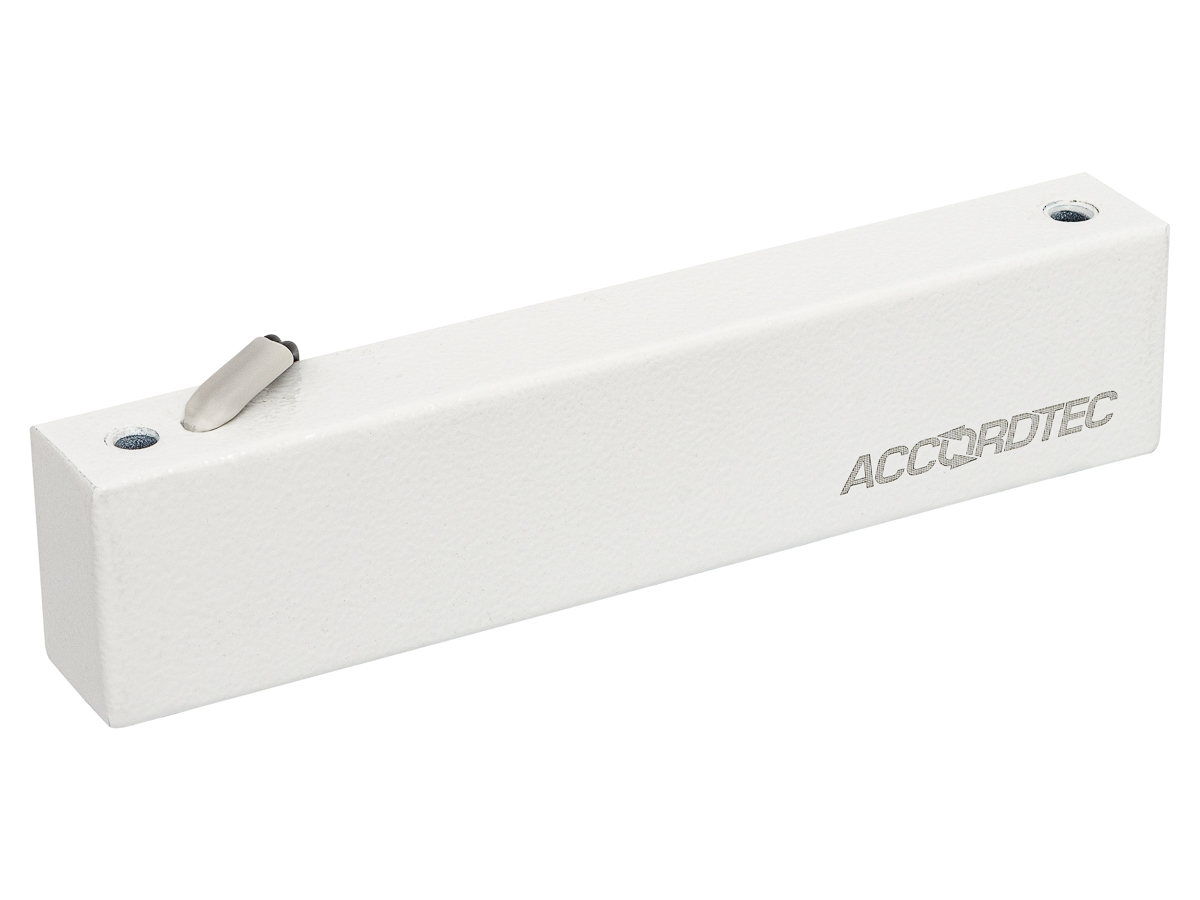 ML-180K с уголком (белый) замок электромагнитный AccordTec; 12V DC; не более 0,4 A; усилие 200 кг; металл; -40°С…+40°С; IP67; 180x40x25 мм; 800 г.