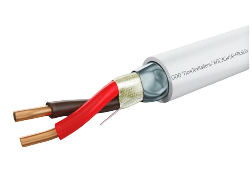 КПСЭСнг(А)-FRLSLTx 2x2x0,5 кабель сигнальный огнестойкий, экранированный ПожТехКабель; сечение жилы 0,50 мм2; огнестойкость кабелей, мин, не менее 180; электрическая емкость пары не более 75 нФ/км; номинальное напряжение не более 300 В; наружный диаметр, кабеля 7,1x11,2 мм; 78,67 кг/км.