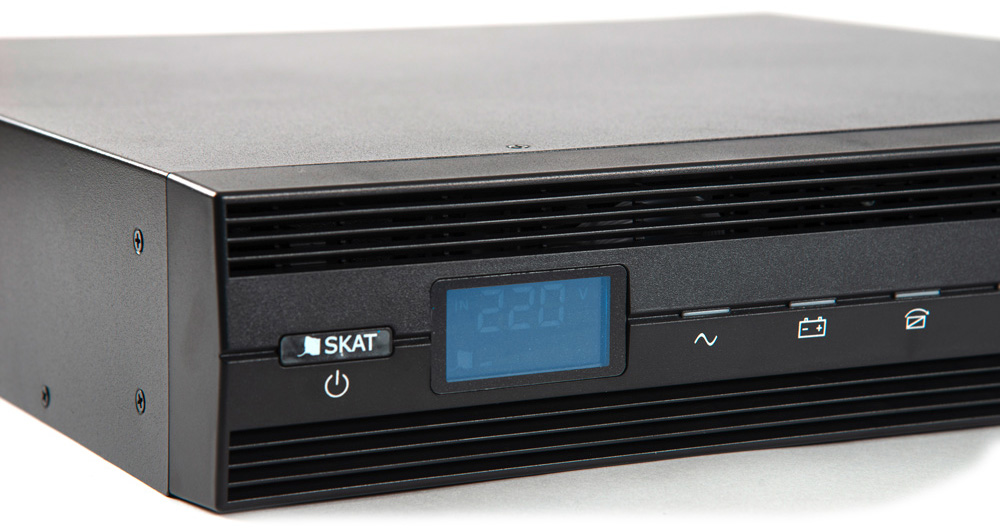 SKAT-UPS 1000 исп.V RACK источник бесперебойного питания; 220В, 1000ВА (700 Вт) On-Line; синусоидальная форма выходного напряжения; световая и звуковая индикация режимов работы; необходимое кол-во АКБ для работы – 2 шт; минимальная требуемая ёмкость 17 Ач; ток заряда АКБ – 6А; три варианта напряжения в одном блоке: 12В, 5А пост.; 24В; 5А переменного; 220 В переменного; дистанционный мониторинг по RS 232; USB; порт для платы релейного интерфейса; возможность подключения SNMP-модуля DL 801; функция удаленного аварийного отключения выходного напряжения (EPO); корпус под 19" шкаф, высота 2U или настольная установка; IP20; 440х430х86,5 мм; 11,5 кг.