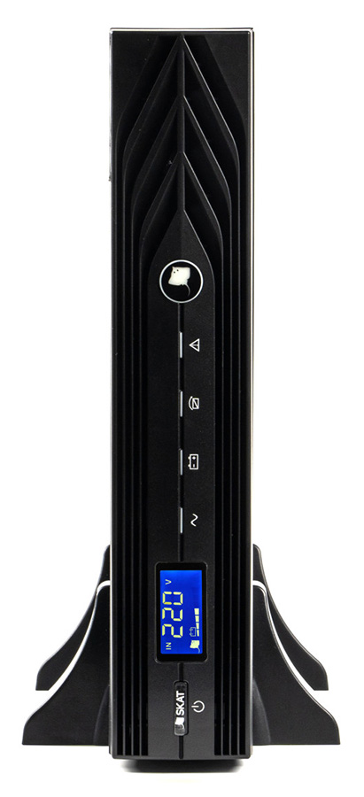 SKAT-UPS 1000-RACK-ON-2x9-E — надёжный российский on-line источник бесперебойного питания 220 В, 1000 ВА (900 Вт), с функциями защиты и контроля. ИБП обеспечивает подключённые к его выходу устройства стабилизированным электропитанием при отсутствии напряжения сети, используя при этом электроэнергию, запасённую в аккумуляторных батареях.