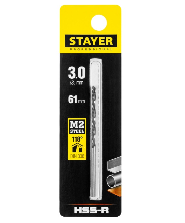Сверло по металлу, быстрорежущая сталь, Ø 3 мм, 61 мм, HSS-R, STAYER "PROFESSIONAL" (арт.29602-3)