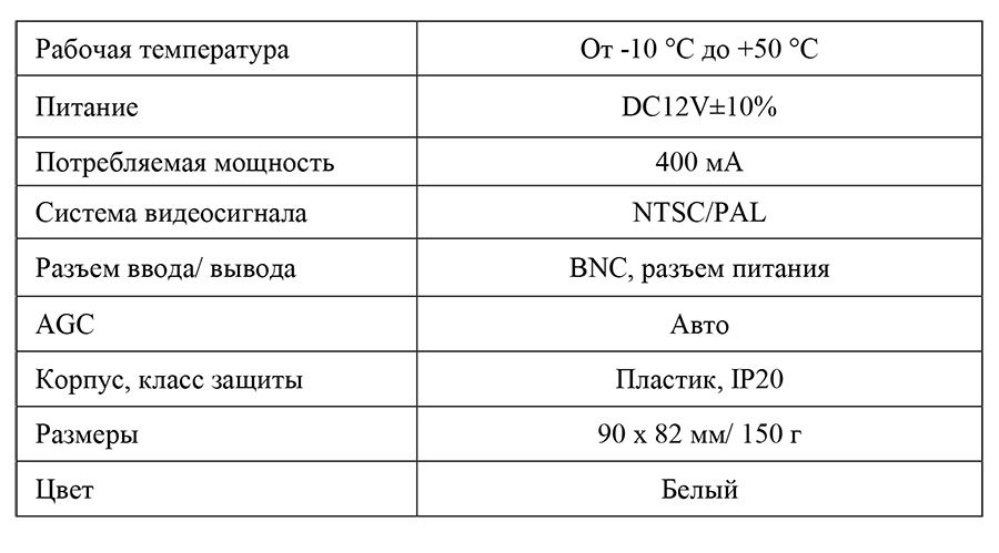 Питание камеры - DC12V±10%.