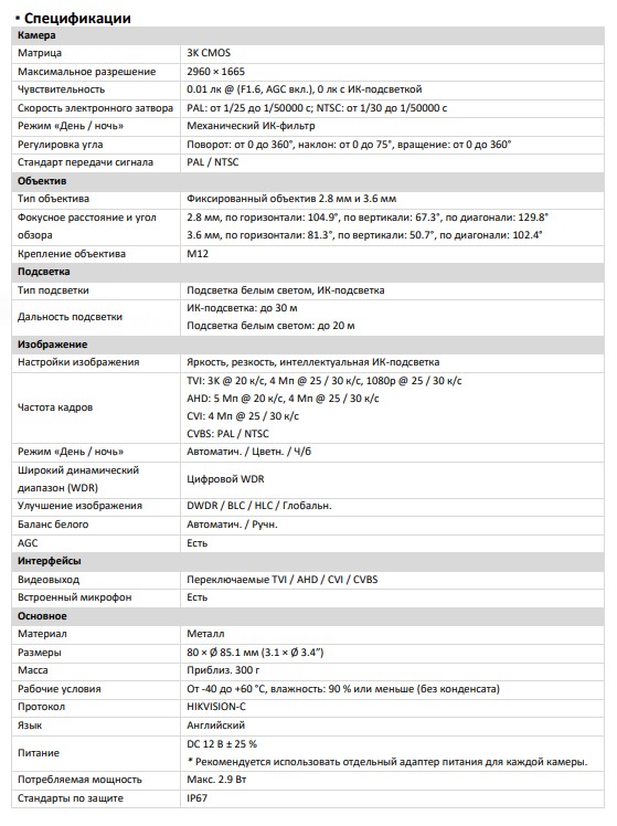 Разрешение: 3К (5 Мп, 16:9)
