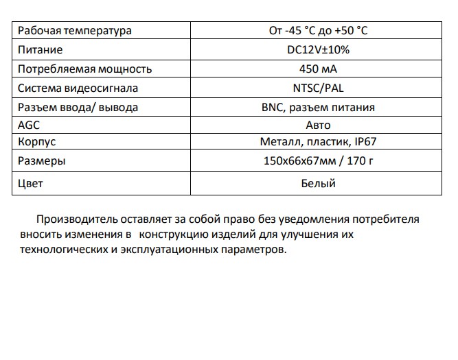 Питание камеры - DC12V±10%. Управление возможно при помощи джойстика через экранное меню.